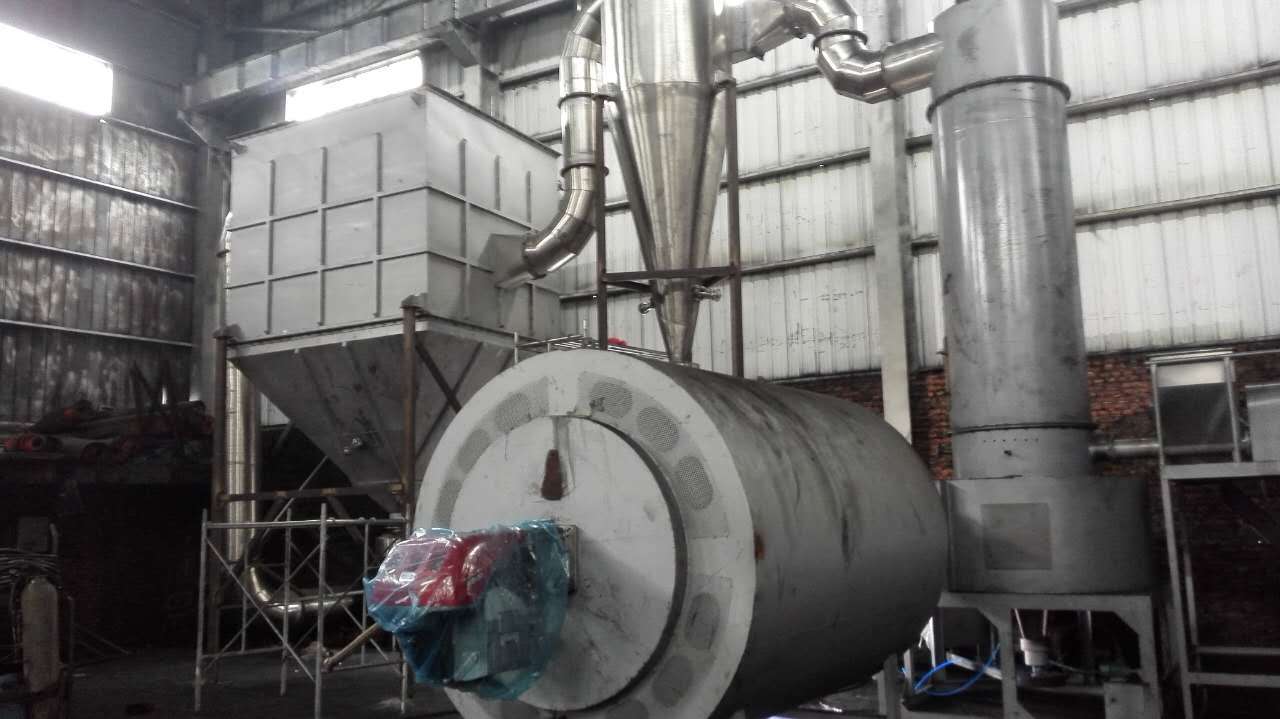 (4)干燥氣流進(jìn)入干燥室底部,產(chǎn)生強(qiáng)烈的旋轉(zhuǎn)氣流,對(duì)器壁上的物料產(chǎn)生強(qiáng)烈的沖刷帶出作用,消除粘壁現(xiàn)象。