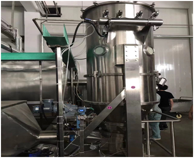 噴霧冷卻制粒機(jī)-由空氣經(jīng)過(guò)濾空氣表面制冷,進(jìn)入干燥器頂部空氣分配器,熱空氣呈螺旋狀均勻的進(jìn)入造粒塔…