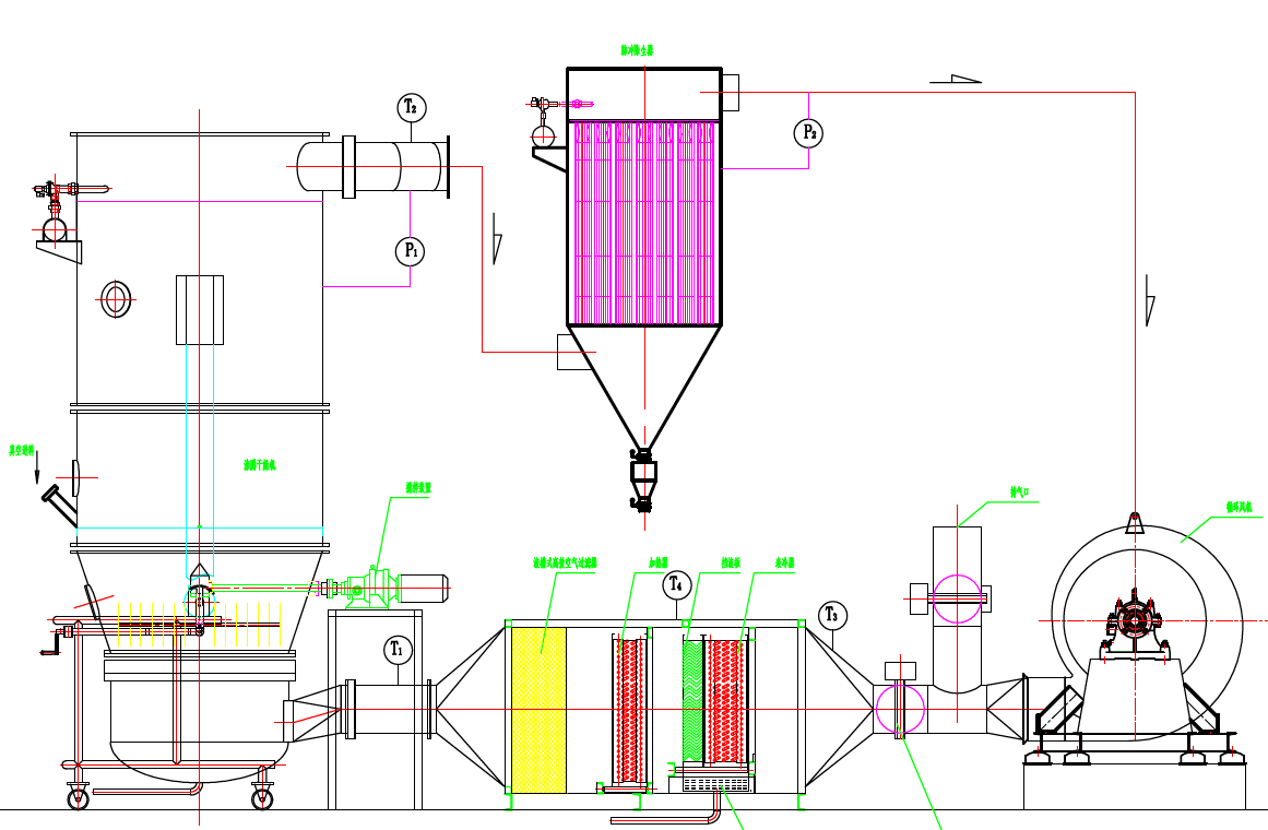 設(shè)備在干燥過(guò)程為流態(tài)化,物料與熱空氣進(jìn)行大面積的氣固接觸,干燥強(qiáng)度大,效率高,且隨著設(shè)備的增大,設(shè)備風(fēng)機(jī)風(fēng)量的提高,設(shè)備的使用效率依舊可以保證;不會(huì)像靜態(tài)真空干燥系統(tǒng),隨著設(shè)備的增大,其干燥效率越來(lái)越低。設(shè)備干燥過(guò)程中的物料為流態(tài)化,避免了真空干燥系統(tǒng)中物料加熱面與物料直接接觸所造成的局部物料過(guò)熱變質(zhì)等其他不良情況。