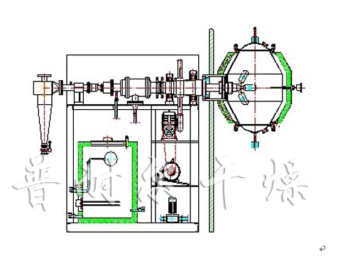 技術(shù)特性: 1.將罐體安裝在無(wú)菌車(chē)間,傳動(dòng)部件及支架安裝在無(wú)菌室外面,中間通過(guò)隔墻隔開(kāi),并用硅膠密封圈在隔墻上密封,確保在無(wú)菌區(qū)能正常運(yùn)轉(zhuǎn)與生產(chǎn)。 2.罐體上的人孔蓋采用圓弧過(guò)渡,避免死角與積料,蓋上裝有振擊銅錘,達(dá)到防粘、振擊脫落料的效果。 3.采用水蒸氣或熱水加熱,應(yīng)用旋轉(zhuǎn)接頭進(jìn)行機(jī)械密封,確保運(yùn)行無(wú)泄漏。 4.采用齒輪傳動(dòng),保證運(yùn)轉(zhuǎn)平穩(wěn),采用二級(jí)變速,同時(shí)采用變頻軟啟動(dòng),做到轉(zhuǎn)速可調(diào)。 5.應(yīng)用三頭或多頭金屬燒結(jié)網(wǎng),避免傳統(tǒng)的濾袋脫落及密封套磨屑掉落現(xiàn)象,確保產(chǎn)品的質(zhì)量,燒結(jié)網(wǎng)易拆裝與清洗。 6.采用雙列角接觸球軸承,這樣形成的固定點(diǎn)有利于設(shè)備的平穩(wěn)運(yùn)轉(zhuǎn),避免了傳統(tǒng)的調(diào)心晃動(dòng);采用單點(diǎn)固定有利于設(shè)備的自由熱膨脹。 7.真空管采用單點(diǎn)雙支撐,有利于真空管的固定,防止真空管變形。 8.設(shè)有旋風(fēng)分離器,能防止因誤操作而泄料,能確保真空系統(tǒng)的正常運(yùn)行。 9.正常放空應(yīng)在無(wú)菌室內(nèi),通過(guò)管道過(guò)濾器放空,但放空的位置不能在罐體上,應(yīng)在真空管道上,不能采用室外空氣。 10.在支架上安裝熱水箱、熱水泵,一方面起到配重作用,另一方面可節(jié)省空間。 11.罐體上設(shè)有現(xiàn)場(chǎng)測(cè)溫表,可隨時(shí)觀察與調(diào)控溫度。 12.罐體上設(shè)有真空上料與卸料口,亦可兼做取樣口,方便進(jìn)料與取樣。 13.采用二道機(jī)械密封,一道是真空密封,一道是凝水密封。 14.真空管道上設(shè)有金屬膨脹節(jié),消除設(shè)備受熱膨脹而引起的變形量。 15.人孔采用快開(kāi)結(jié)構(gòu),方便操作、維修、清洗、消毒等。 技術(shù)參數(shù)