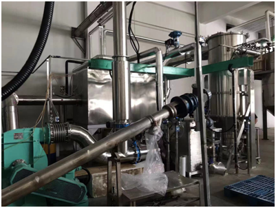 一、進(jìn)料:設(shè)備的進(jìn)料采用位差進(jìn)料,工作強(qiáng)度小,物料不沾管道,且加料迅速。